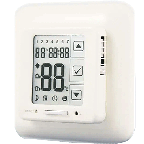 HandyHeat 270 är en fullt programmerbar termostat med touchskärm. Den stora LCD-displayen visar alltid aktuell programstatus och gör det enkelt och överskådligt att ställa in programmen.
