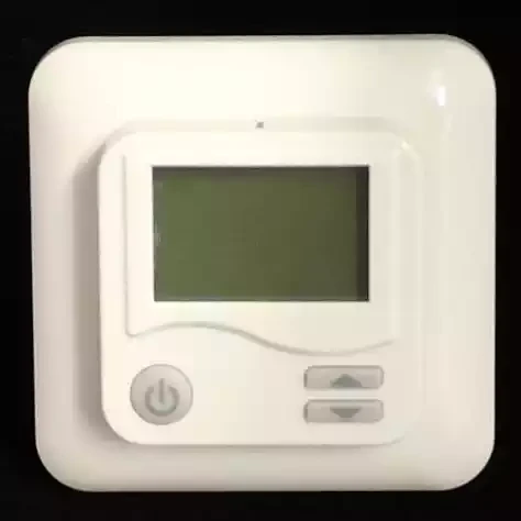 Stor LCD-display. Två knappar för inställning av temperatur och en till / frånbrytare gör denna termostat enkel att använda.